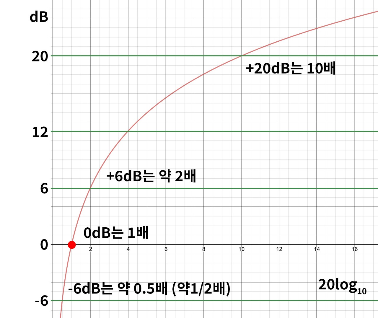 dB에서는 덧셈으로 ?배차이가 더해지고, 뺄셈으로 ?배차이가 줄어든다고 보면 됩니다