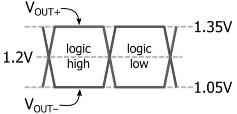 또한, 두 신호의 차이 값은 최대 350 mV인데, 이것은 로직 레벨을 0에서 1로 바꾸거나, 또는 1에서 0으로 바꾸는데 걸리는 시간이 과거 TTL이나 CMOS방식 대비 짧아지게 되었고, 이는 궁극적으로 데이터 전송 속도를 올리는 원리가 되었다.