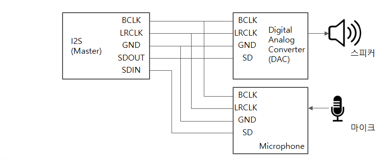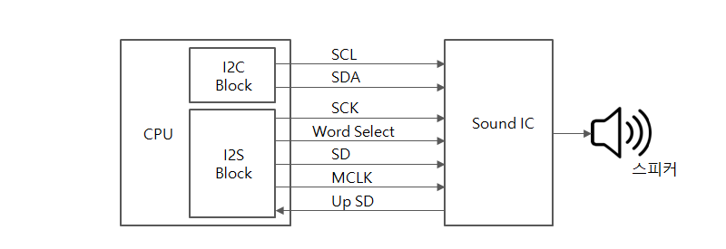 마지막으로 살펴 볼 내용은 mp3와 I2S의 관계이다. 결론부터 보자면, mp3는 I2S를 통해서 직접 전송이 될 수는 없다. I2S 는 PCM 데이터, 즉 압축되지 않은 오디오 데이터만을 전송한다. 따라서 mp3는 CPU에 의해서 메모리에서 PCM데이터 형태로 변환이 된 후에 I2S를 통해서 스피커로 전송이 된다.