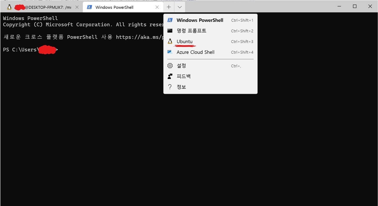 Windows 10에 Linux용 Windows 하위 시스템 설치 가이드에서 리눅스 설치에 필요한 명령어를 확인할 수 있습니다. 이 때, 터미널은 아래의 2가지 명령어를 수행해야 WSL2를 설치할 수 있습니다. WSL2가 아닌 WSL의 경우는 다소 상이하니 위의 링크를 참고해주세요.
