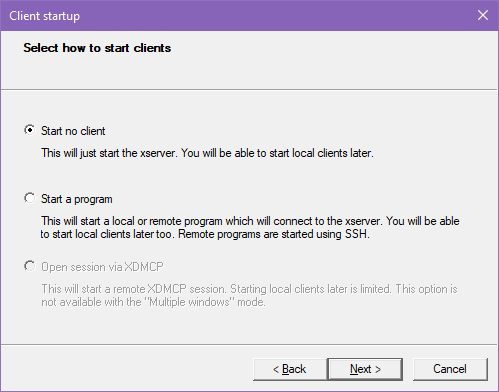 기본값인 Start no client를 설정하고 다음 단계로 이동합니다.